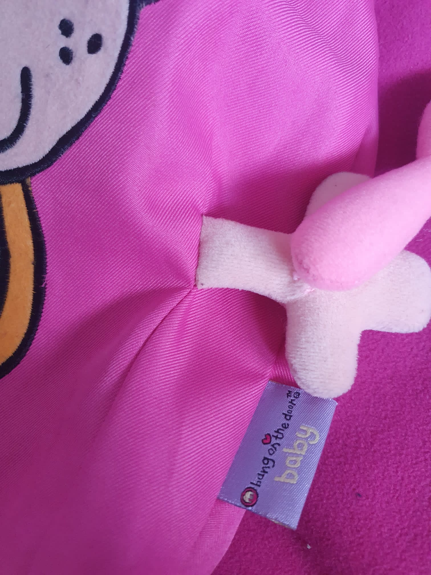 A super cute and increasingly hard-to-find piece, featuring the iconic Bang on the Door Baby character in a soft pink design. Perfect as a nostalgic collectible, display piece, or light-use bag.