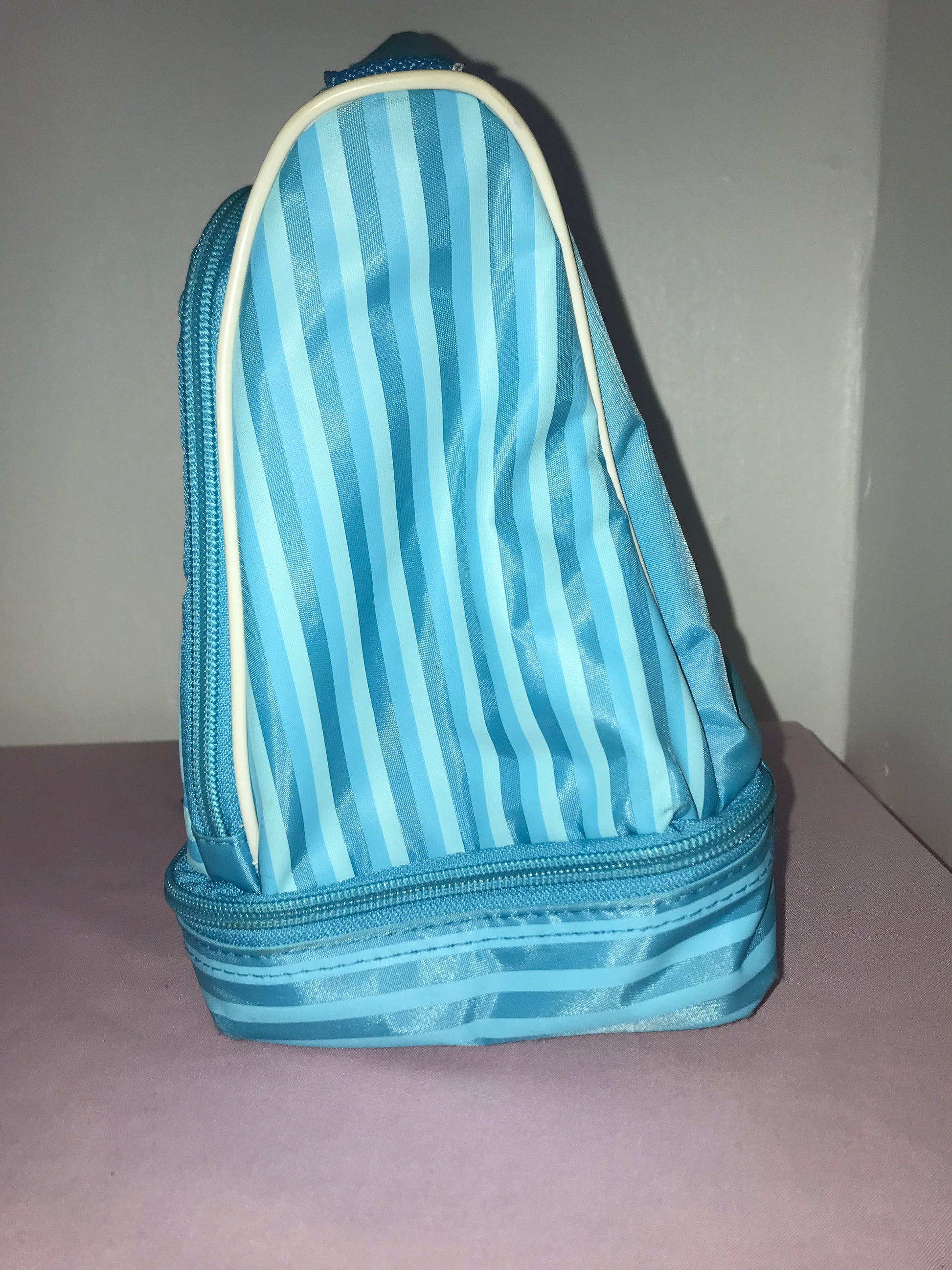 Bratz vintage lunch bag in a bright blue striped design, featuring classic early-2000s Bratz artwork and logo. A genuine Y2K accessory that perfectly captures the bold, fashion-forward Bratz aesthetic.