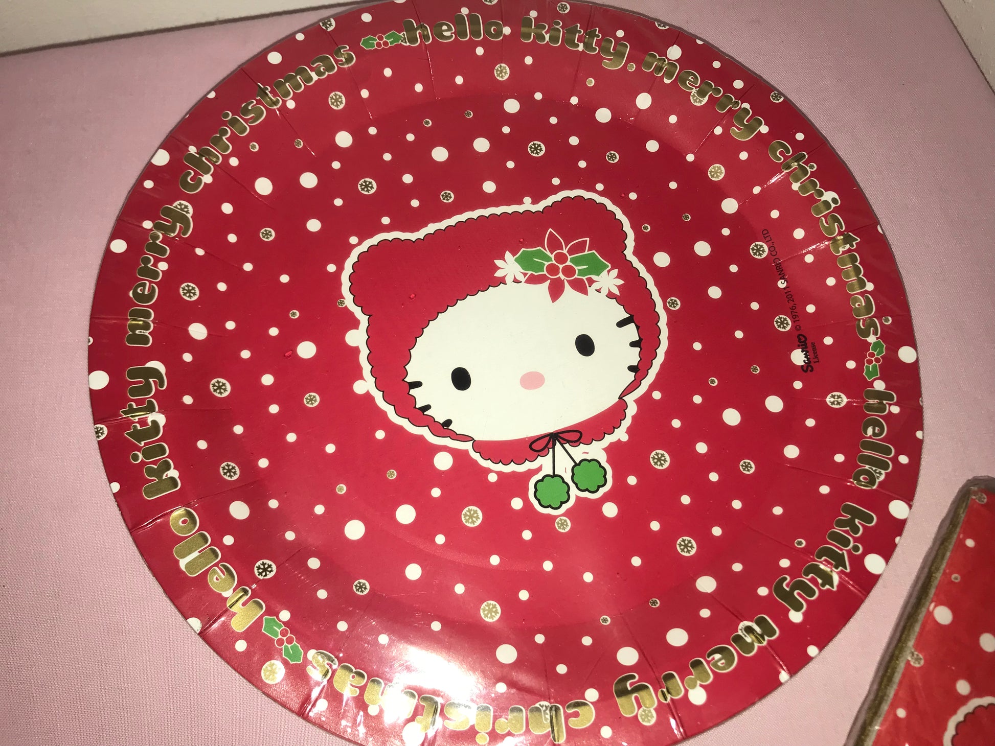 Hello Kitty Christmas themed plates and napkins set from 2011, featuring the festive “Hello Kitty Merry Christmas” "Hello Kitty" sanrio character licensed partyware set and is brand new in original packaging.