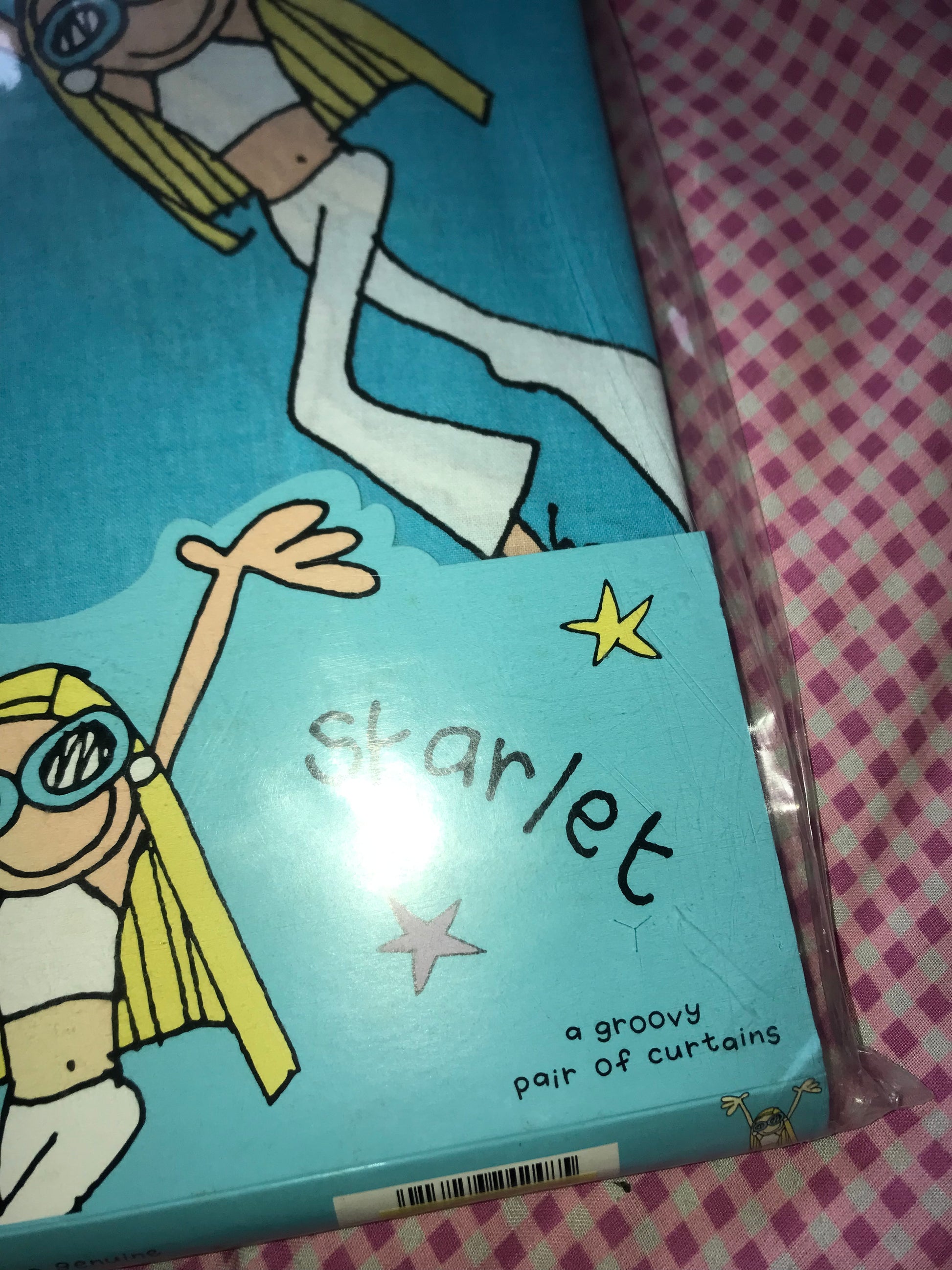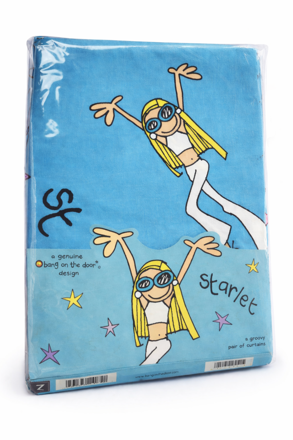 Vintage Starlet curtains by Bang On The Door uk. featuring the iconic early-2000s Groovy Chick–era artwork. A genuine Y2K homeware piece from 2002, now highly sought after by collectors and lovers of nostalgic interiors.